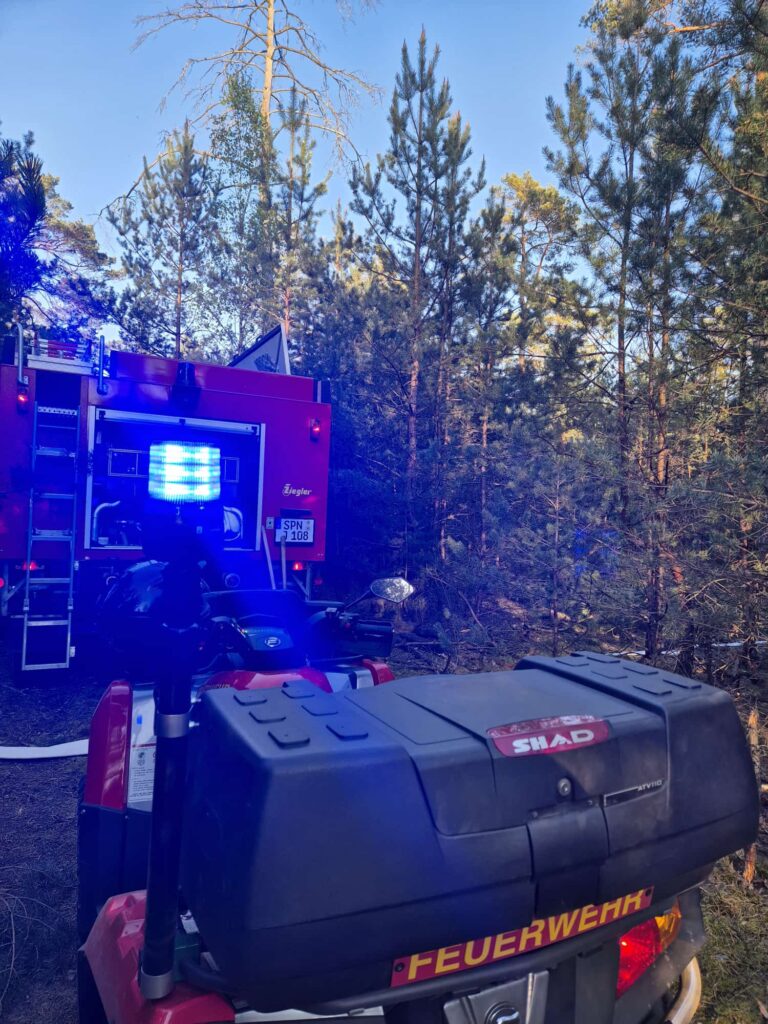 An der Einsatzstelle angekommen, bestätigte sich die Lage: Etwa 1.500 m² Waldboden standen in Flammen. In Preschen an der Feuerwehr wurde eine Wasserentnahmestelle für die eingesetzten Tanklöschfahrzeuge eingerichtet. Der Wassertransport erfolgte im Pendelverkehr zur Brandstelle.