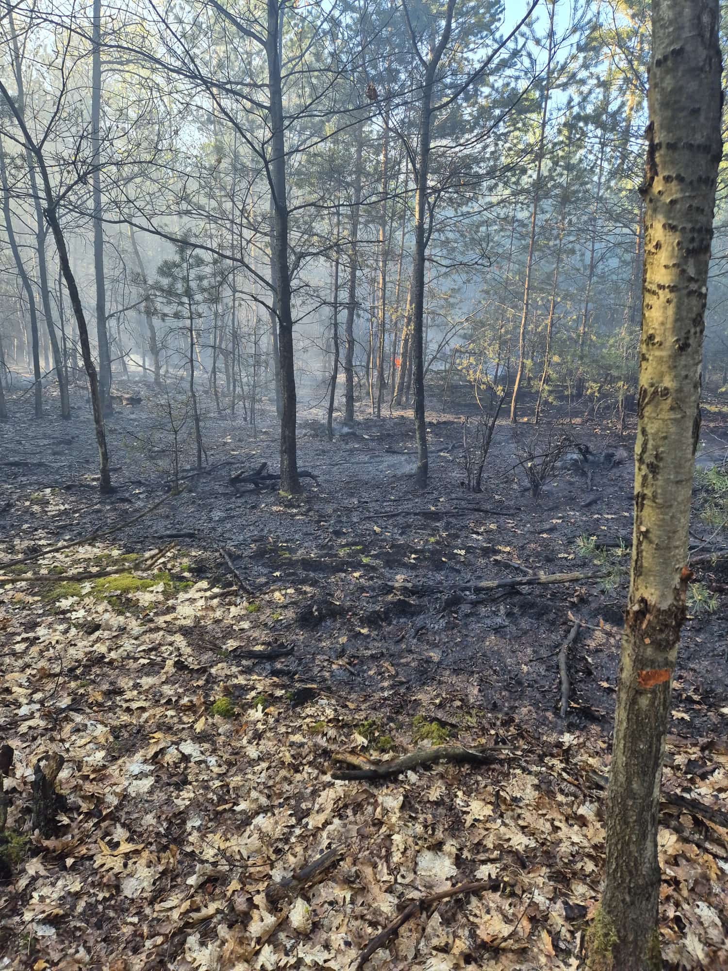 Im weiteren Verlauf wurde eine zweite Brandstelle entdeckt, etwa 500 m² groß. Um diese zu erreichen, mussten umgestürzte Bäume mittels Motorkettensäge beseitigt werden, damit der Unimog der Feuerwehr Klein Loitz zum Feuer vordringen konnte.