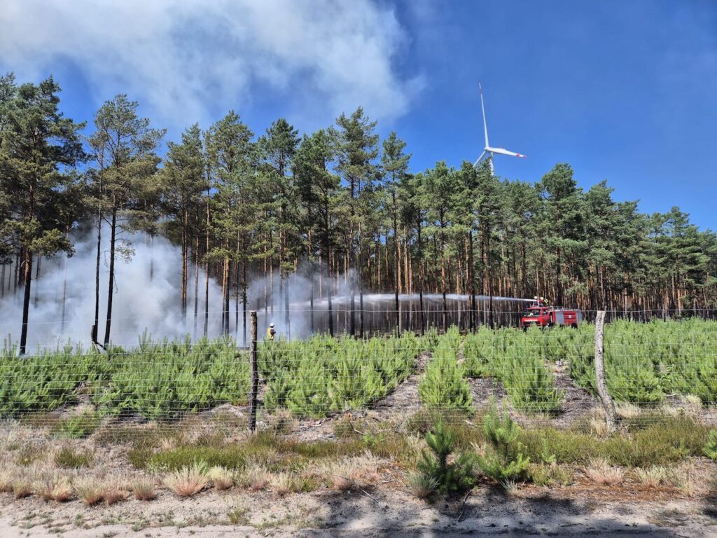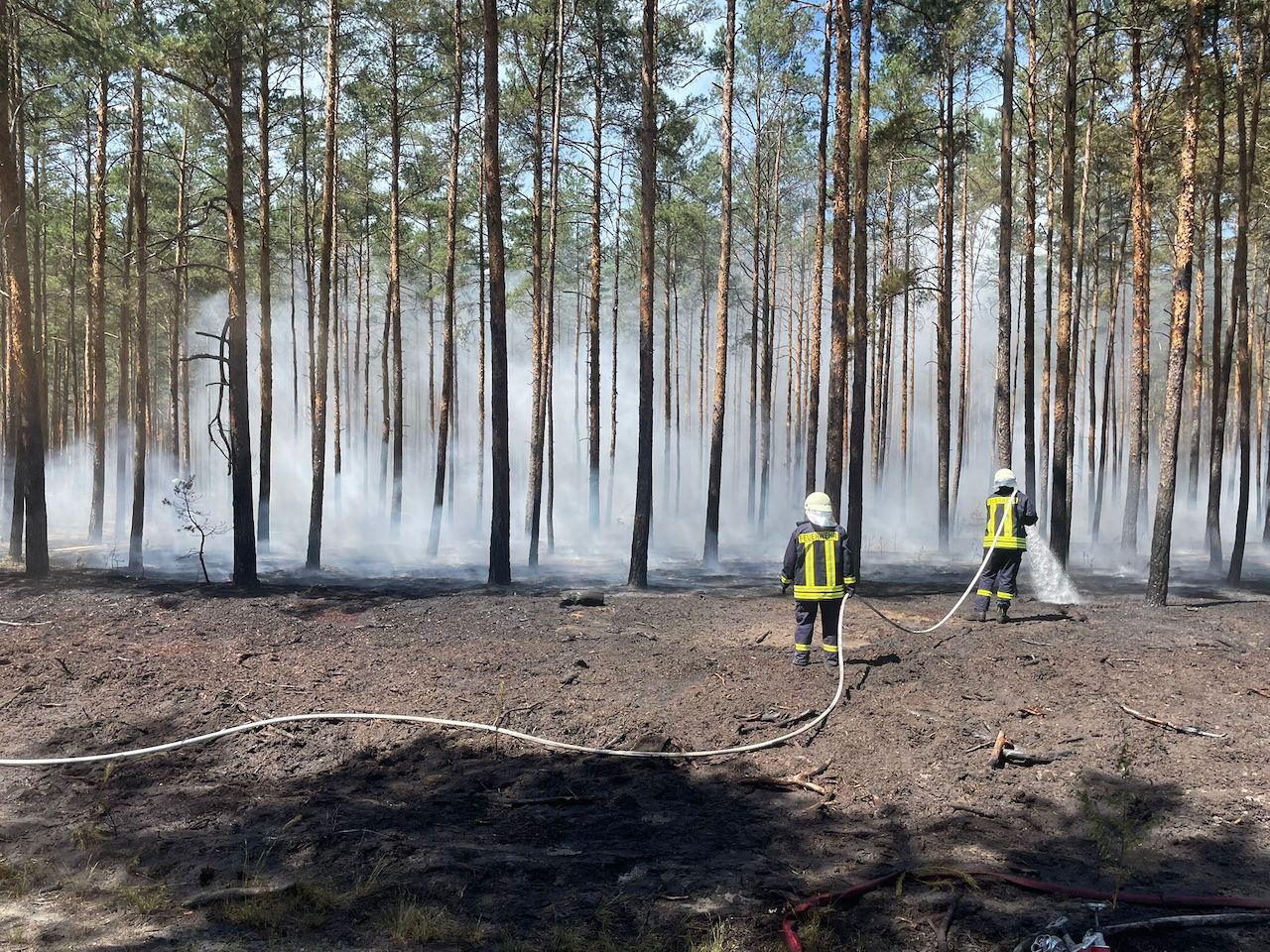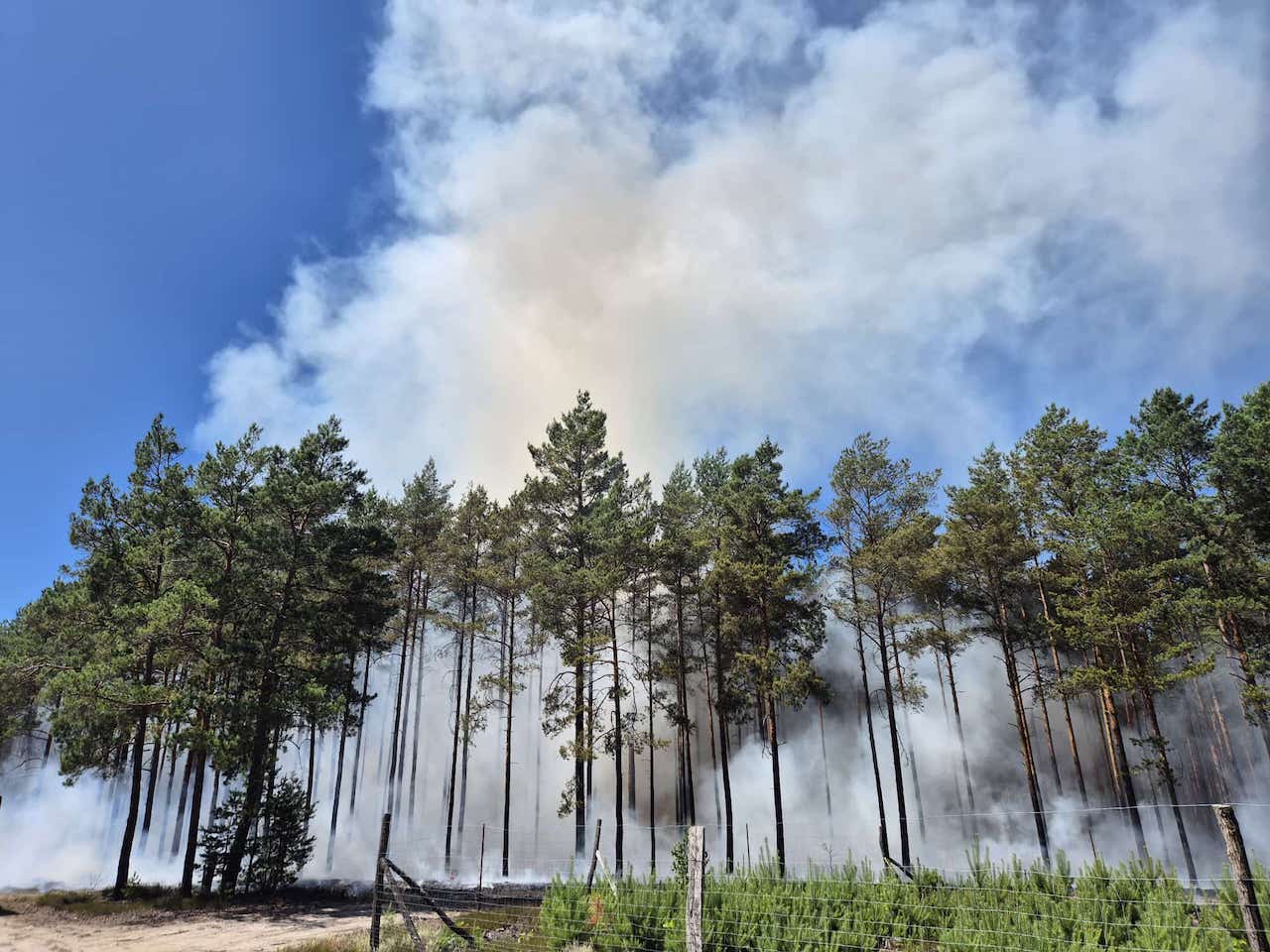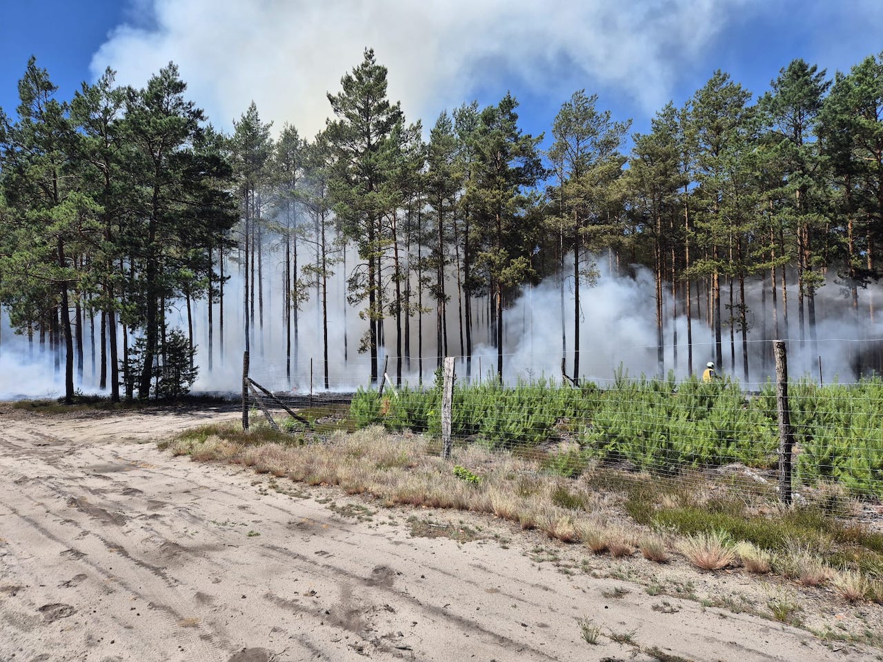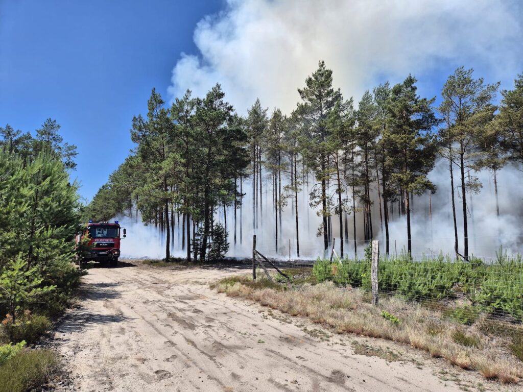 Bereits auf der Anfahrt war die Einsatzstelle aufgrund einer deutlichen Rauchsäule weithin sichtbar. Der betroffene Bereich liegt im bekannten Waldbrand-Schwerpunktgebiet der Region, weshalb gemäß Waldbrandkarte neben den Ortswehren auch gleich initial Kräfte aus dem benachbarten Sachsen, darunter aus Köbeln, Bad Muskau und Weißwasser, mitalarmiert wurden.