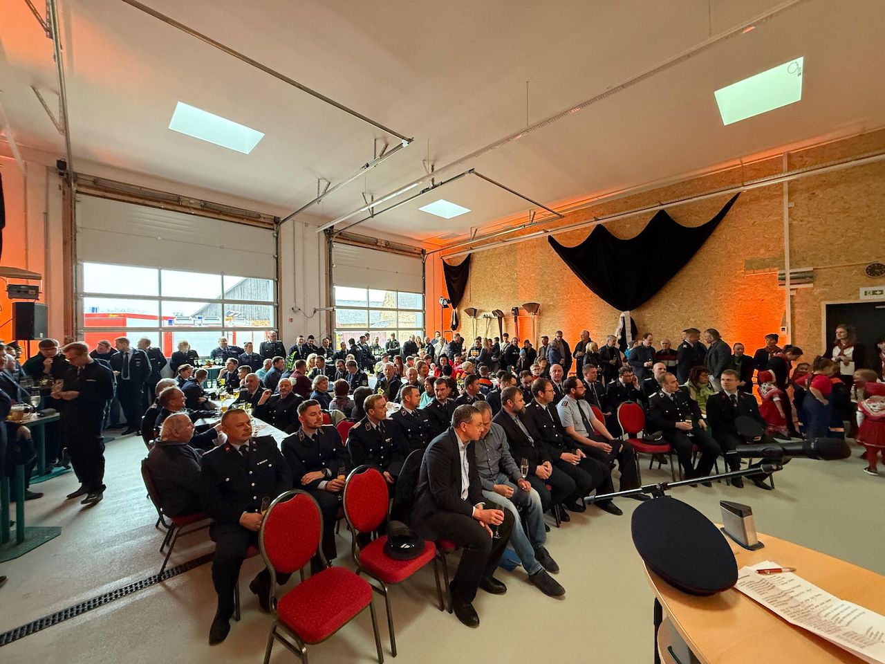 Ortswehrführer Olaf Hanusch blickte in seiner Rede auf den langen Weg bis zur Fertigstellung des neuen Feuerwehrhauses zurück. Ursprünglich wollte die Feuerwehr Halbendorf nur ihr in die Jahre gekommenes Kleinlöschfahrzeug (KLF) ersetzen. Doch da moderne Fahrzeuge zunehmend größer und schwerer werden, wurde schnell klar, dass das alte Gerätehaus, das sich über dem Kindergarten befand, nicht mehr den Anforderungen entsprach. Bevor ein neues Fahrzeug beschafft werden konnte, musste daher zuerst ein neues Feuerwehrgebäude her.