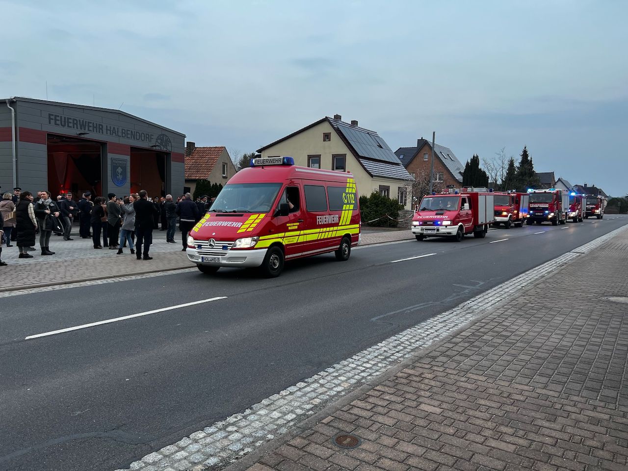 Nach der offiziellen Einweihung folgte eine Ausfahrt der Gastfeuerwehren und des KLF von Halbendorf mit Blaulicht durch das Kirchspiel Schleife. Den Höhepunkt bildete die feierliche letzte Einfahrt des bisherigen KLF in das neue Gerätehaus. Zeitgleich wurde übergangsweise ein neues Fahrzeug aus der Ortswehr Rohne in Dienst gestellt.