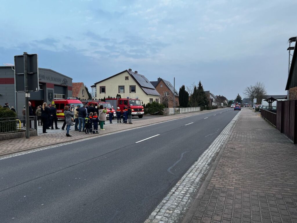 Am darauffolgenden Sonntag, dem 30. März, konnten die Bürger Halbendorfs das neue Gebäude im Rahmen eines “Tags der offenen Tür” besichtigen. Auch wir von der Feuerwehr Döbern waren mit unserem Löschgruppenfahrzeug vor Ort und begeisterten die kleinen Besucher mit Rundfahrten im großen Feuerwehrauto.