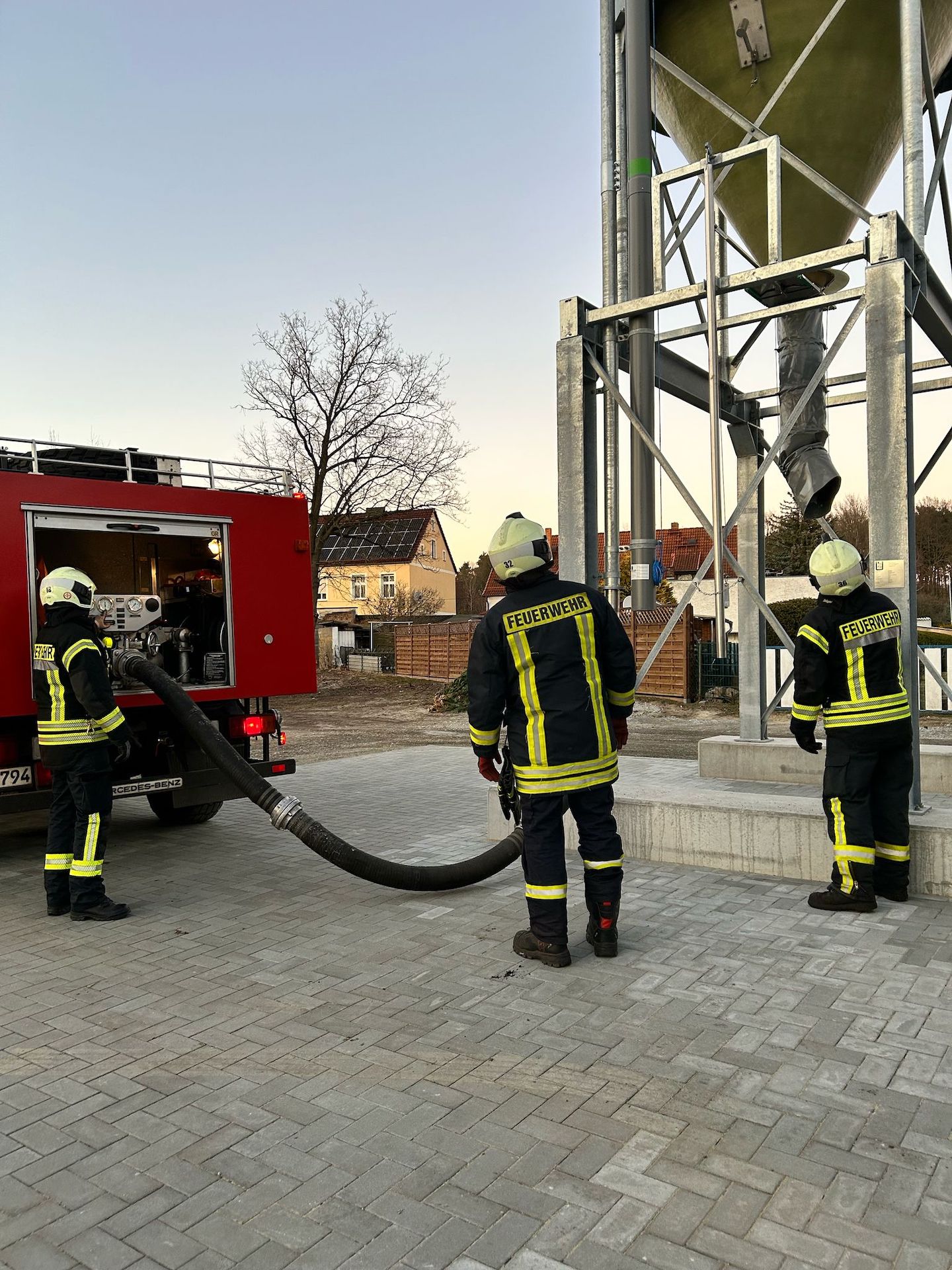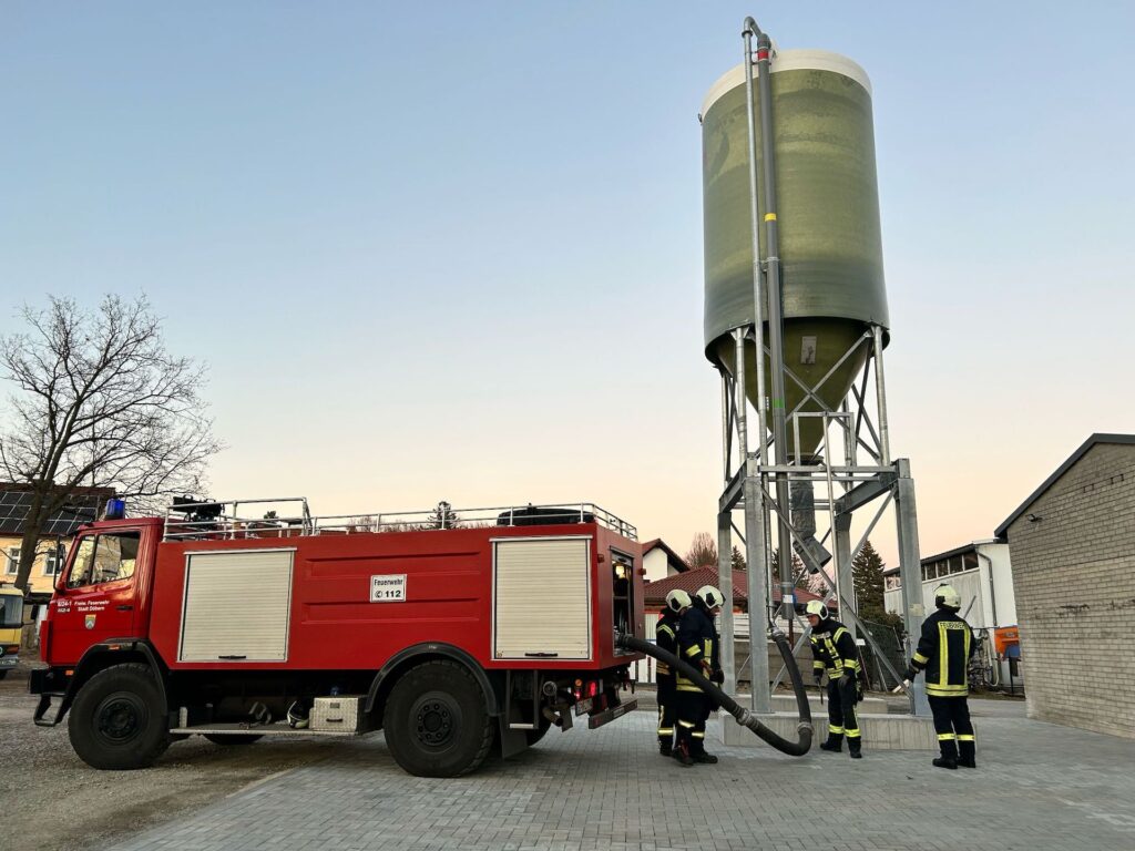 Um eine reibungslose Befüllung sicherzustellen, hat die Stadt Döbern am Bauhof ein eigens dafür errichtetes Silo installiert. Hier wird der Sand vorgetrocknet und in den Wintermonaten durch eine spezielle Heizvorrichtung frostfrei gehalten. Das System erlaubt eine schnelle Wiederbefüllung des Fahrzeugs innerhalb weniger Minuten.